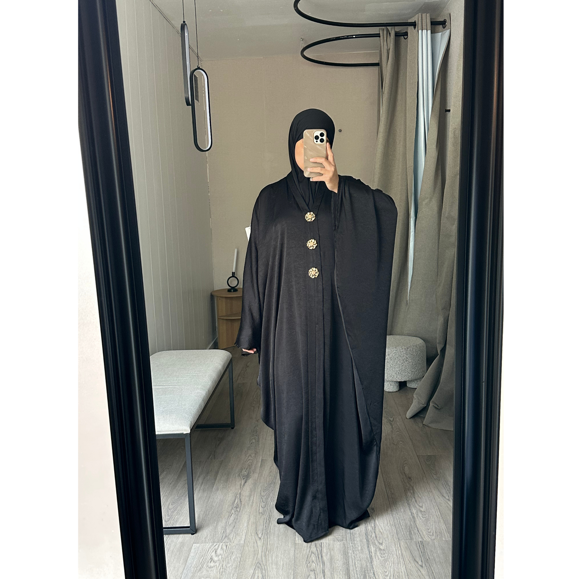 Abaya longue et ample au tombé fluide, idéale pour un look sobre et raffiné. Elle se distingue par ses finitions soignées et sa simplicité élégante.