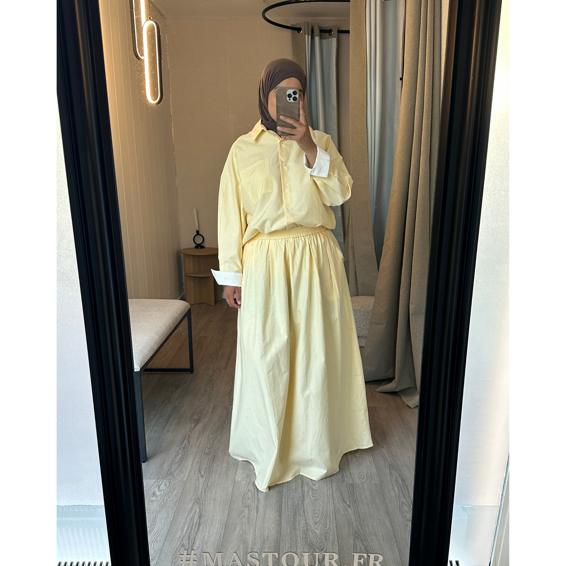 🔗 La chemise assortie dans la même teinte est également disponible sur le site pour composer un ensemble complet.