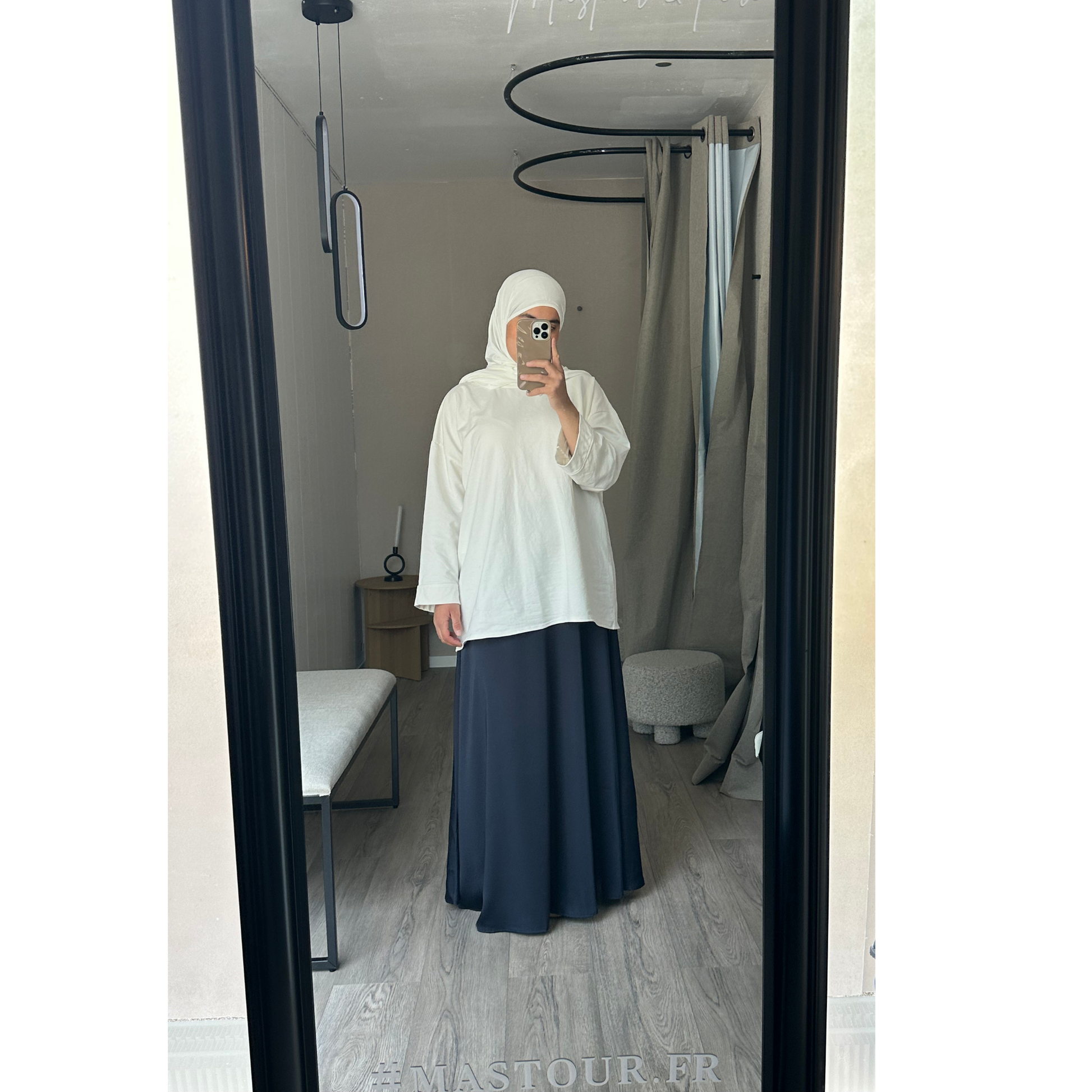 Chic et fluide, cette jupe évasée satinée apporte élégance et confort à vos tenues. Sa coupe longue évasée et son tissu doux en font une pièce idéale pour un style mastour. Disponible en plusieurs coloris.