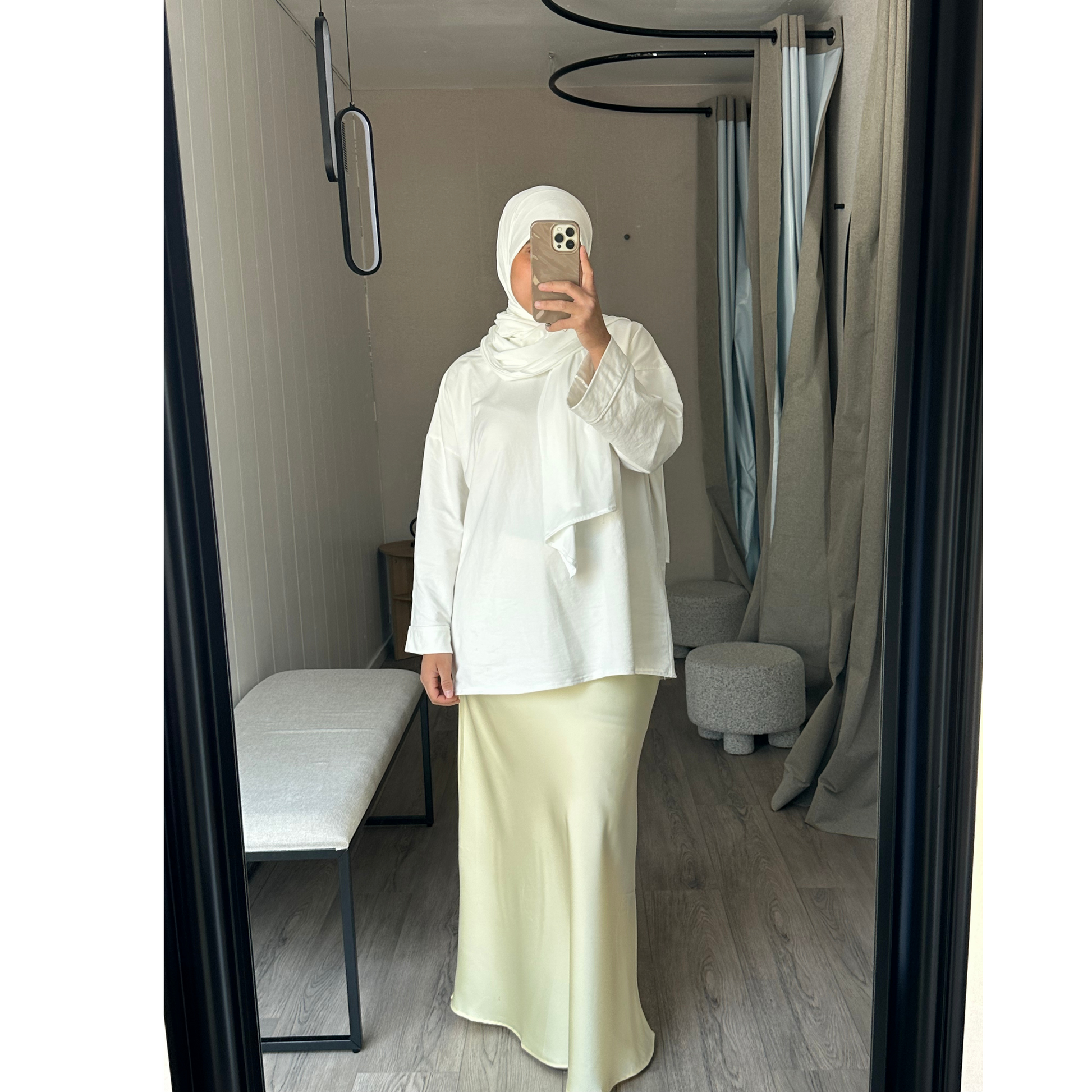 Lumineuse et tendance, cette jupe satinée jaune pastel apporte l'élégance à toutes vos tenues. Sa coupe fluide offre un tombé gracieux, idéal pour un style féminin, raffiné. Sa longueur en fait une pièce parfaite pour les looks modest chic du quotidien ou des occasions spéciales.
