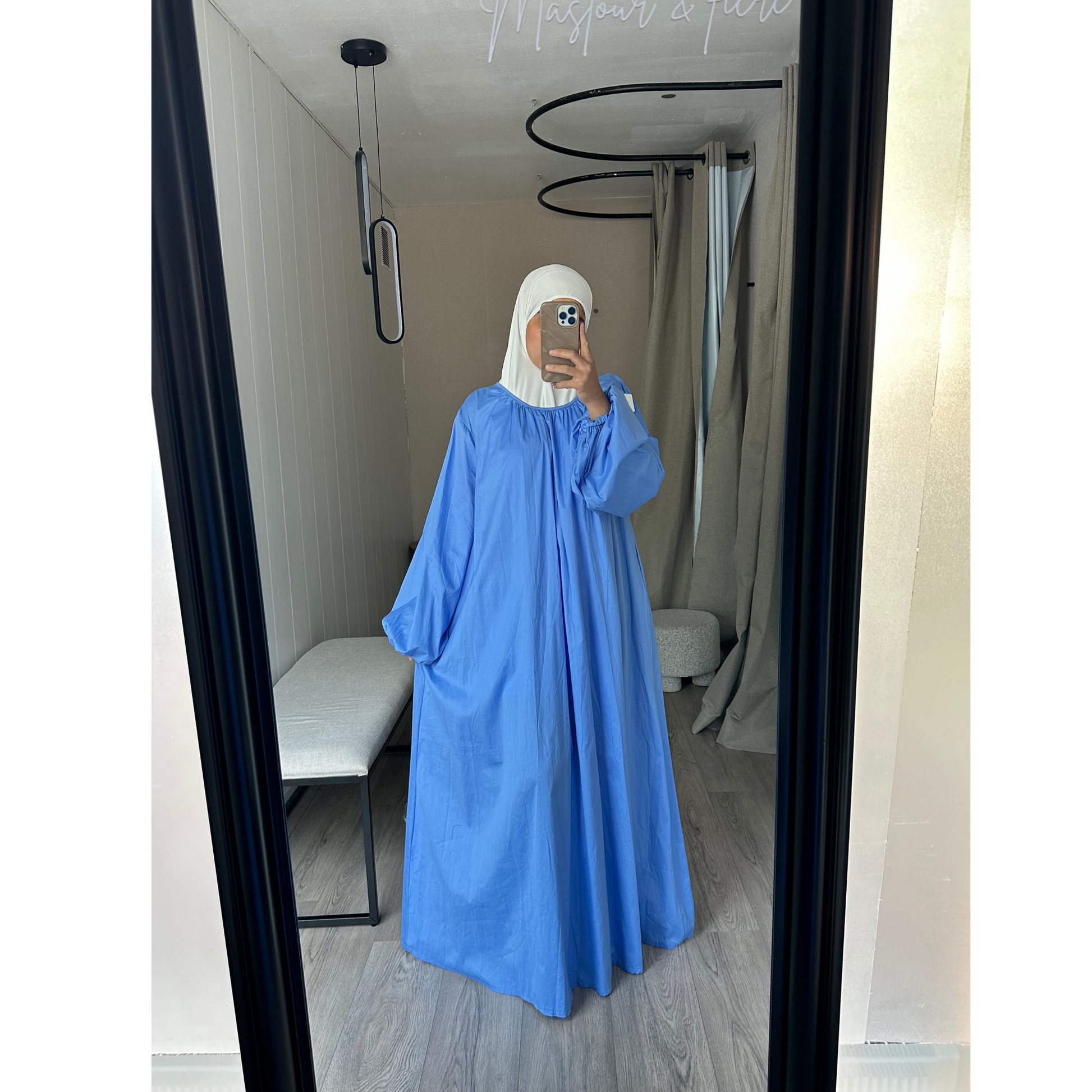 Cette robe longue au style mastour allie confort et élégance. Sa coupe ample et couvrante, sans transparence, convient parfaitement aux femmes recherchant une tenue légère et tendance.
