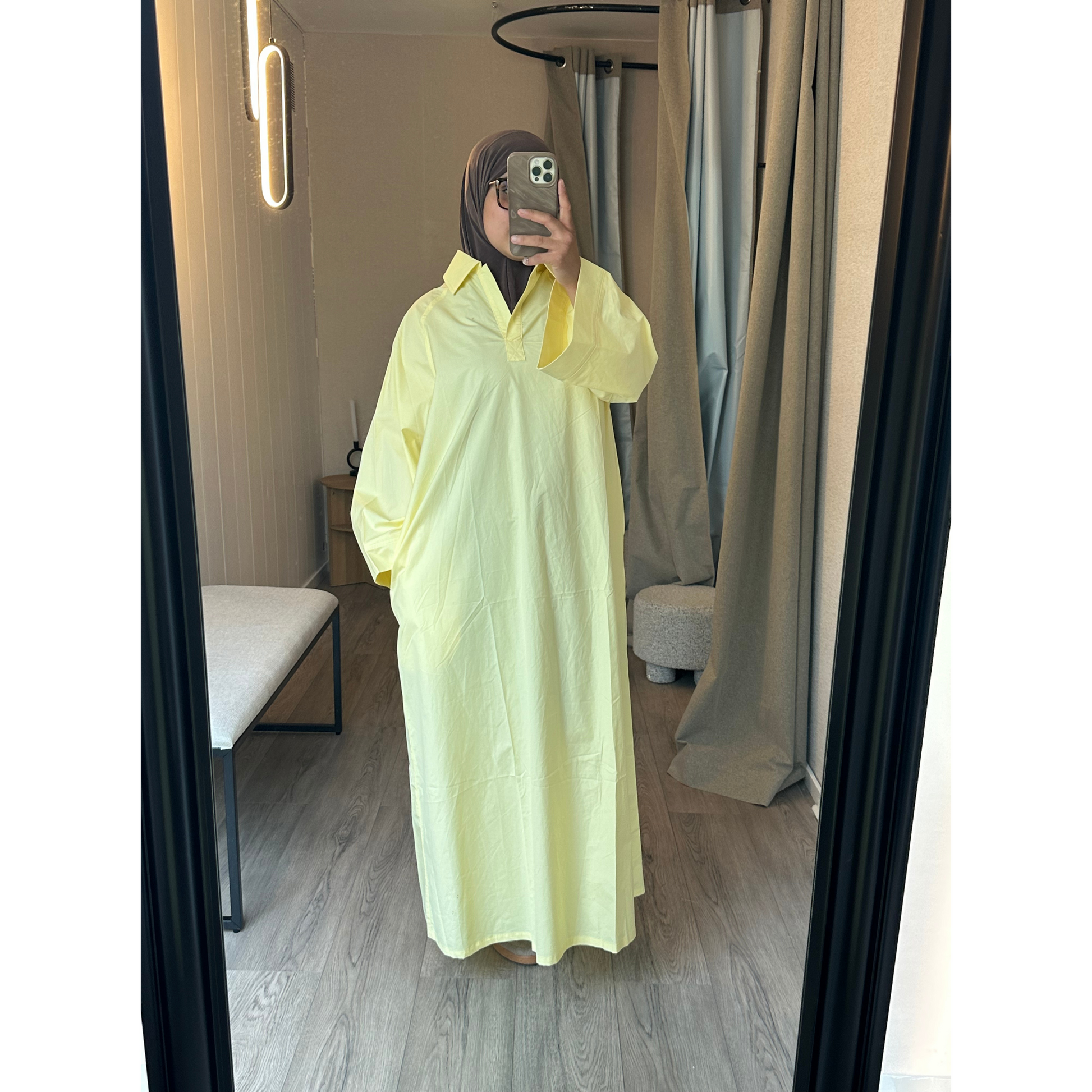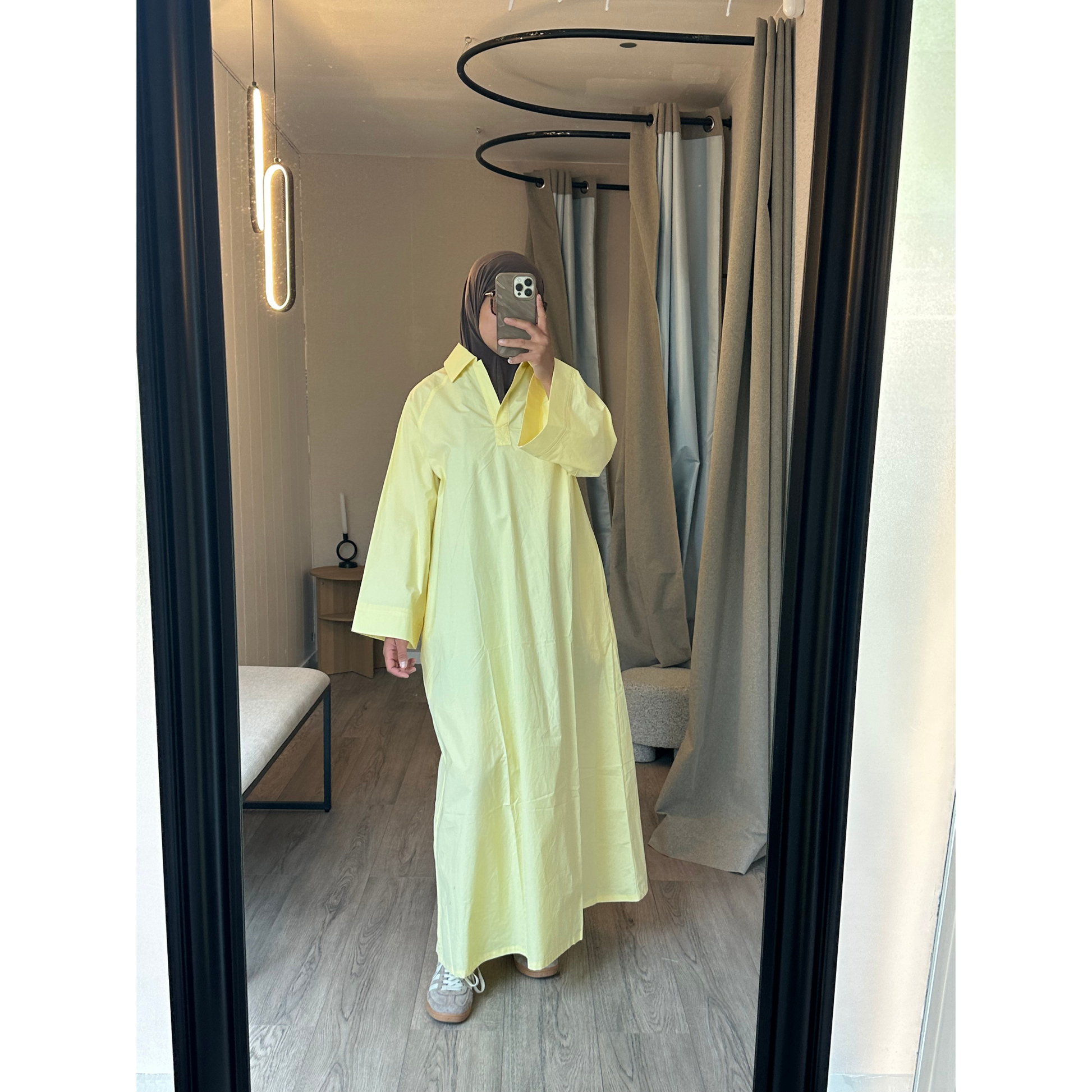 Envie de fraîcheur et de confort ? Cette robe en popeline jaune est faite pour vous.