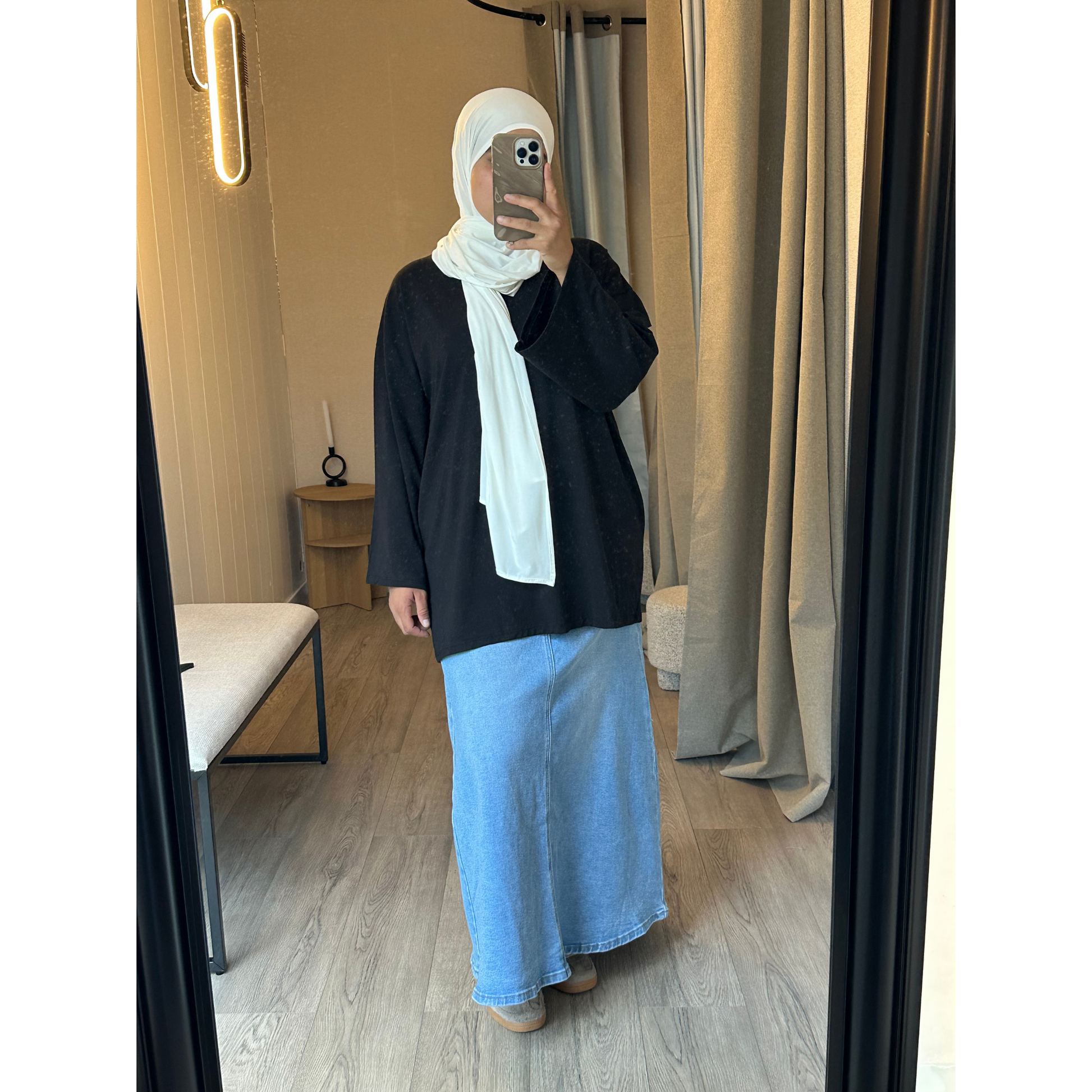Ce t-shirt noir à manches longues est un basique essentiel, facile à porter seul ou en superposition.